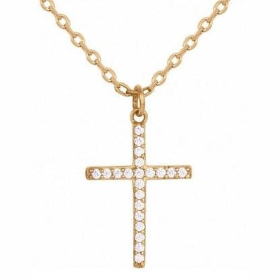 Ce très beau collier en plaqué or vous séduira par son délicat pendentif en forme de croix, serti de 21 oxydes brillants. Un bijou fin et élégant à porter au quotidien !