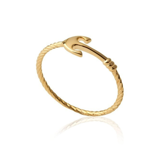 Une bague au motif d'ancre marine et cordage de bateau. Un modèle finement ouvragé et délicat à porter seul ou accompagné.