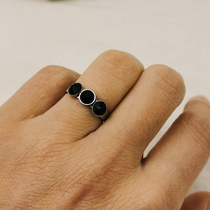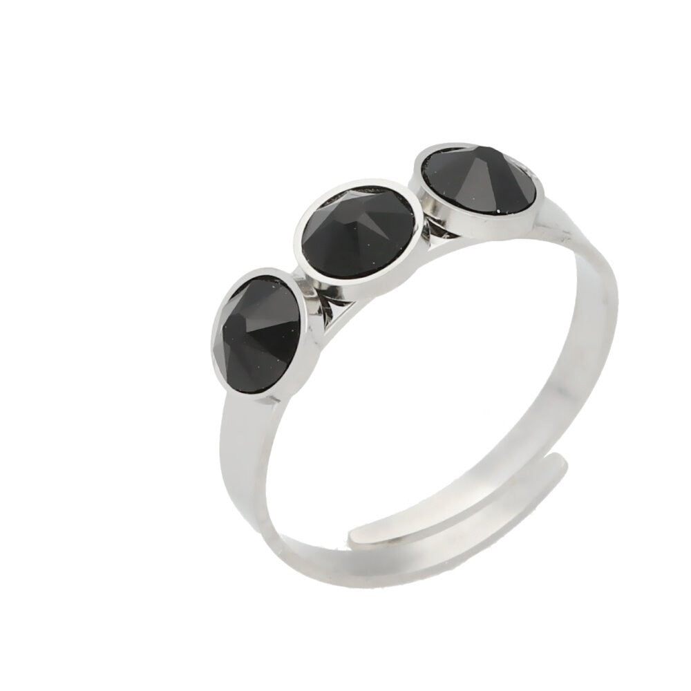 Vous allez craquer pour cette bague réglable en acier inoxydable ! Elle est ornée de trois cristaux de Swarovski véritable de couleur noire, pour une brillance incomparable qui illuminera votre doigt au quotidien !