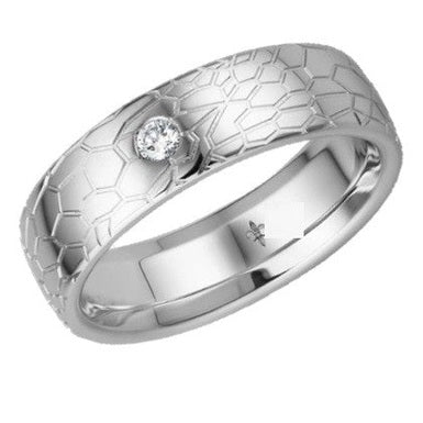 Craquez pour cette alliance au motif peau de crocodile pour un rendu contemporain. Vous ne pourrez pas résister au diamant serti clos au centre de l'alliance qui vient apporter de l'éclat. Un bijou intemporel qui vous accompagnera toute votre vie.