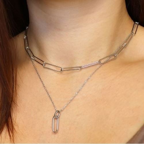 Modernité et élégance sont au menu de ce collier en argent et de son pendentif composé de deux maillons ajourés ovales : un bijou contemporain que vous ne pourrez plus quitter !