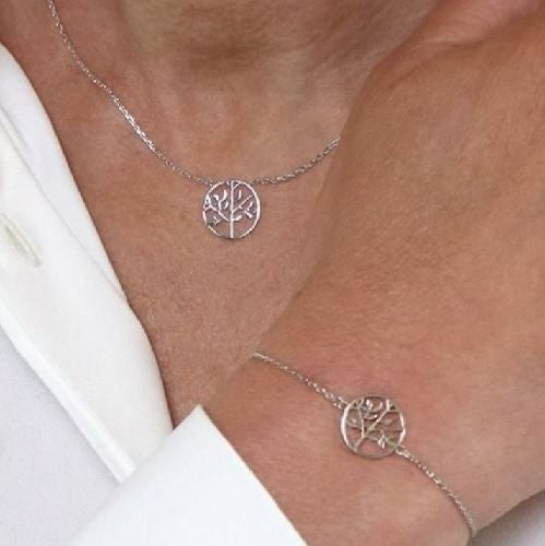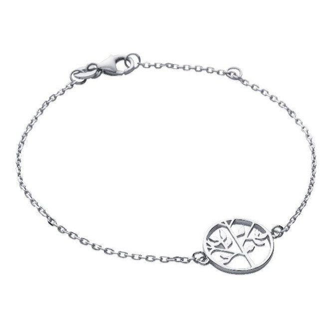 Un bracelet souple en argent rhodié de 18cm de longueur. Un modèle au motif ajouré, avec un 'arbre de vie monté sur chaine maille forçat pour un rendu fin et délicat à porter au quotidien.