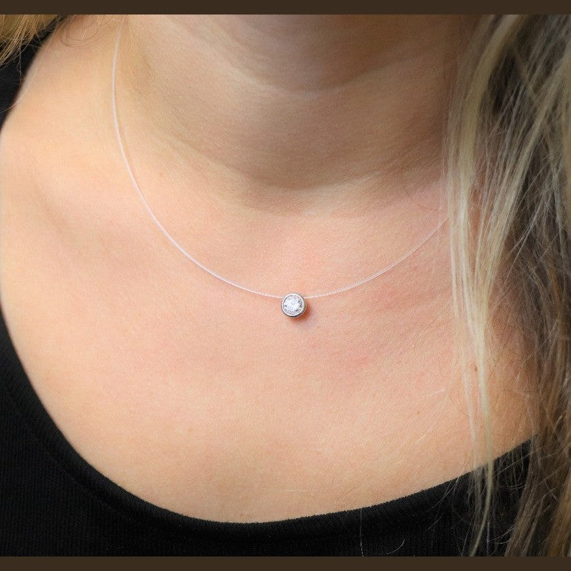 Un superbe collier sur fil nylon discret. On adore cet oxyde de zirconium serti clos en argent qui viendra subtilement se déposer sur votre cou.