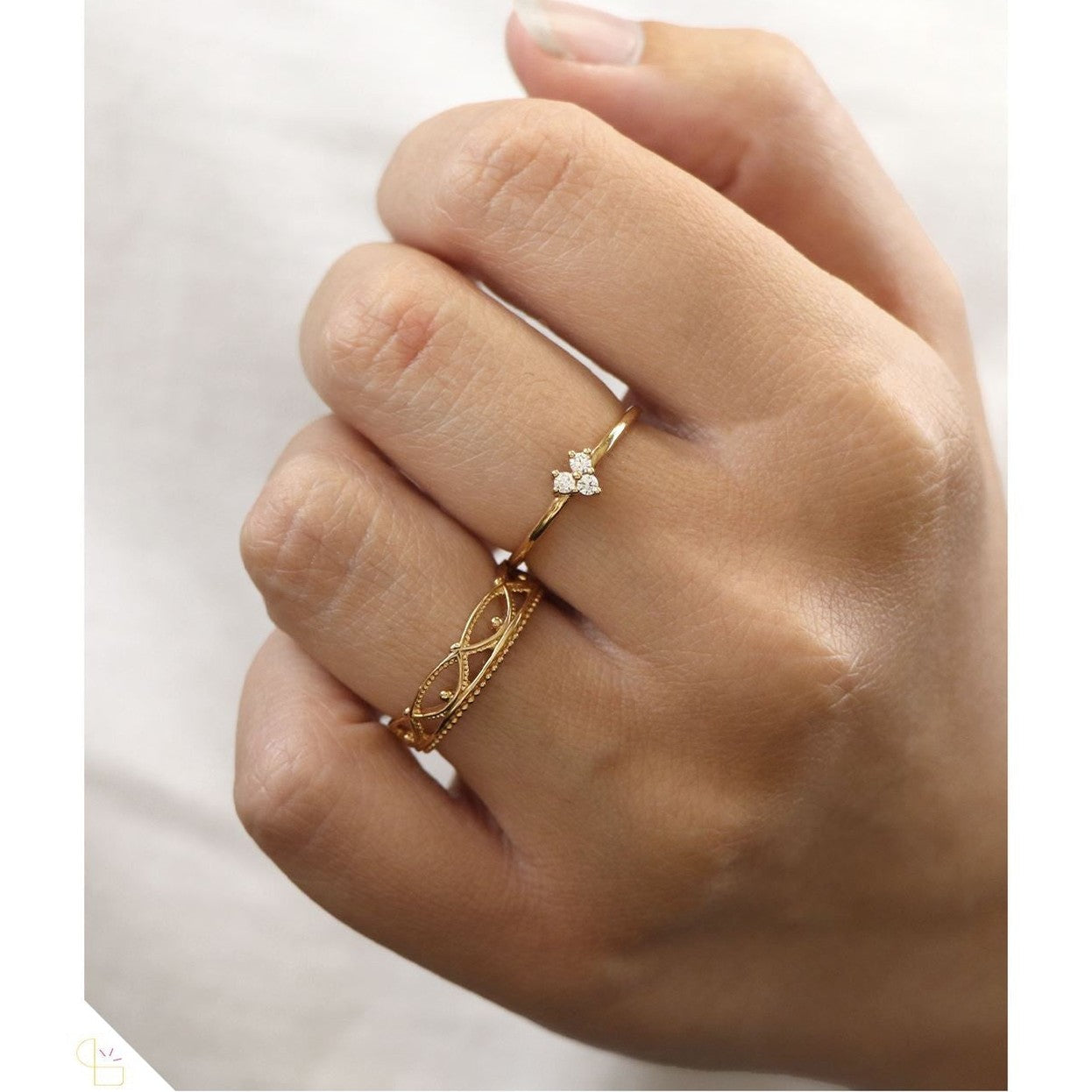 Sertie de 3 oxydes de zirconium rond formant un cœur, cette bague fine mise sur la simplicité. Un bijou élégant à porter sans modération !