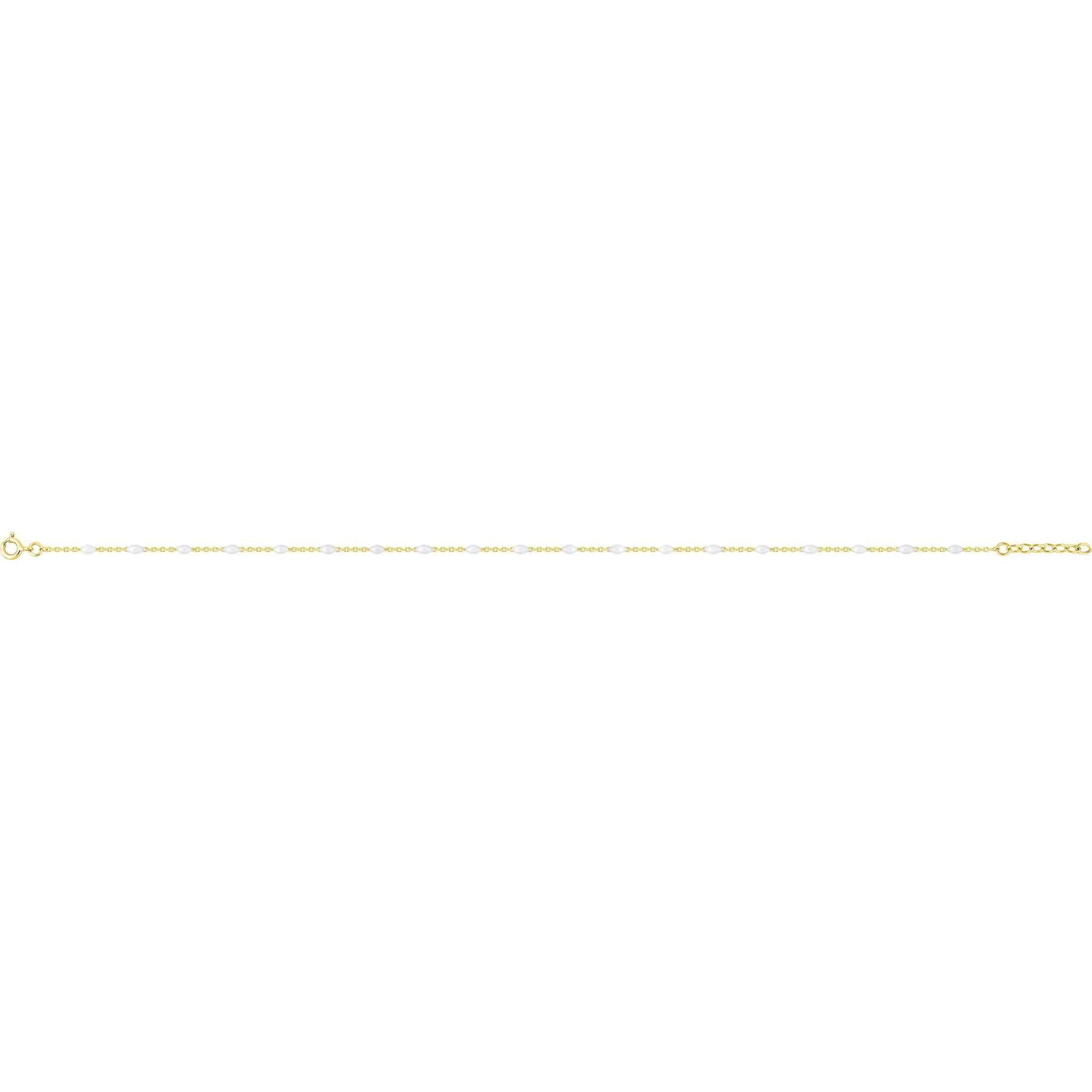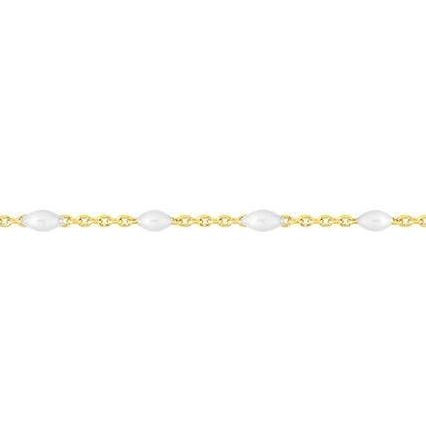Accessoire indispensable pour les beaux jours, habillez votre cheville de cette jolie chaine en plaqué or ornée de billes de résine blanche. Une châine de cheville simple que vous allez adorer porter !