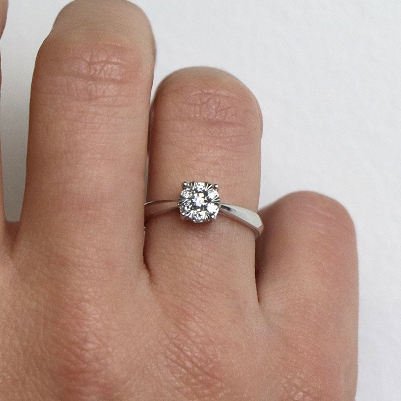 Difficile de résister à l'éclat de cette bague en or blanc 750/1000 et ornée de diamants de 0.27ct. Un modèle habilement travaillé et qui donne l'impression d'une pierre d'un poids de 1 carat. Un bijou tout en brillance, un classique de la bijouterie rendu accessible grâce à un délicat et subtil travail de joaillerie.