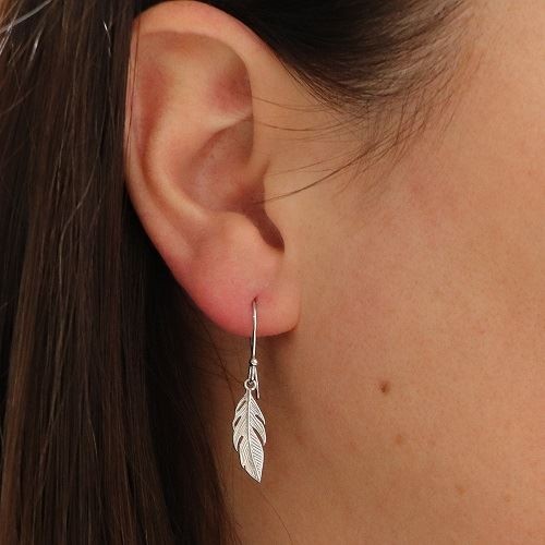 Boucles d'oreilles en argent rhodié 925/1000. La forme de la plume délicatement travaillée offre un modèle contemporain à porter au quotidien. Un incontournable de votre boîte à bijoux !