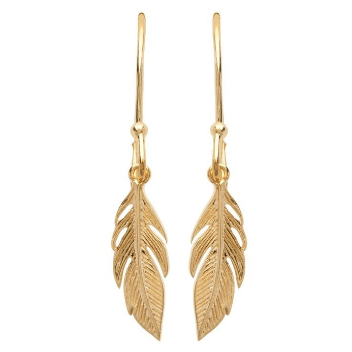 Superbe paire de boucles d'oreilles en plaqué or avec un motif plume. Un incontournable !