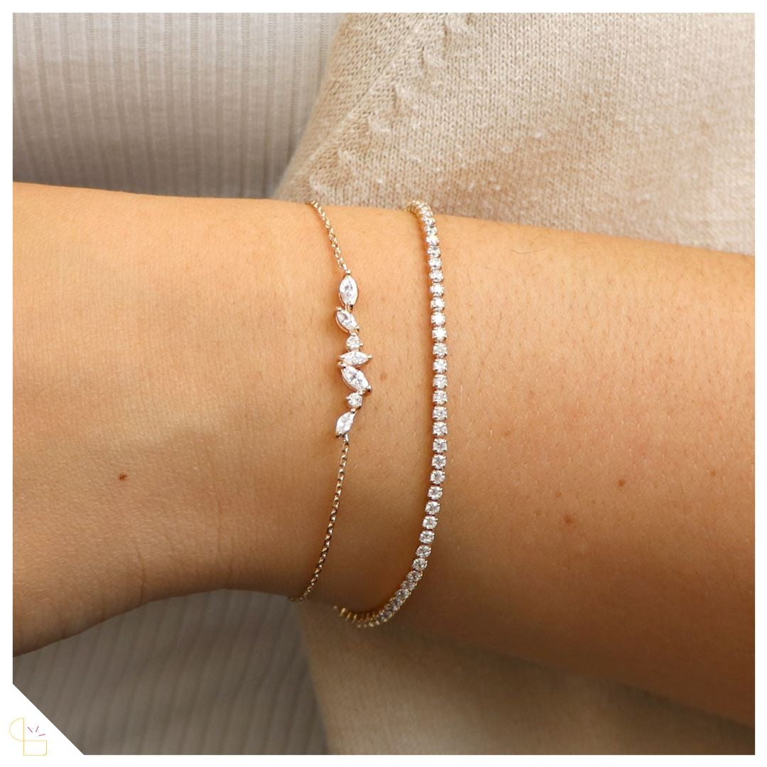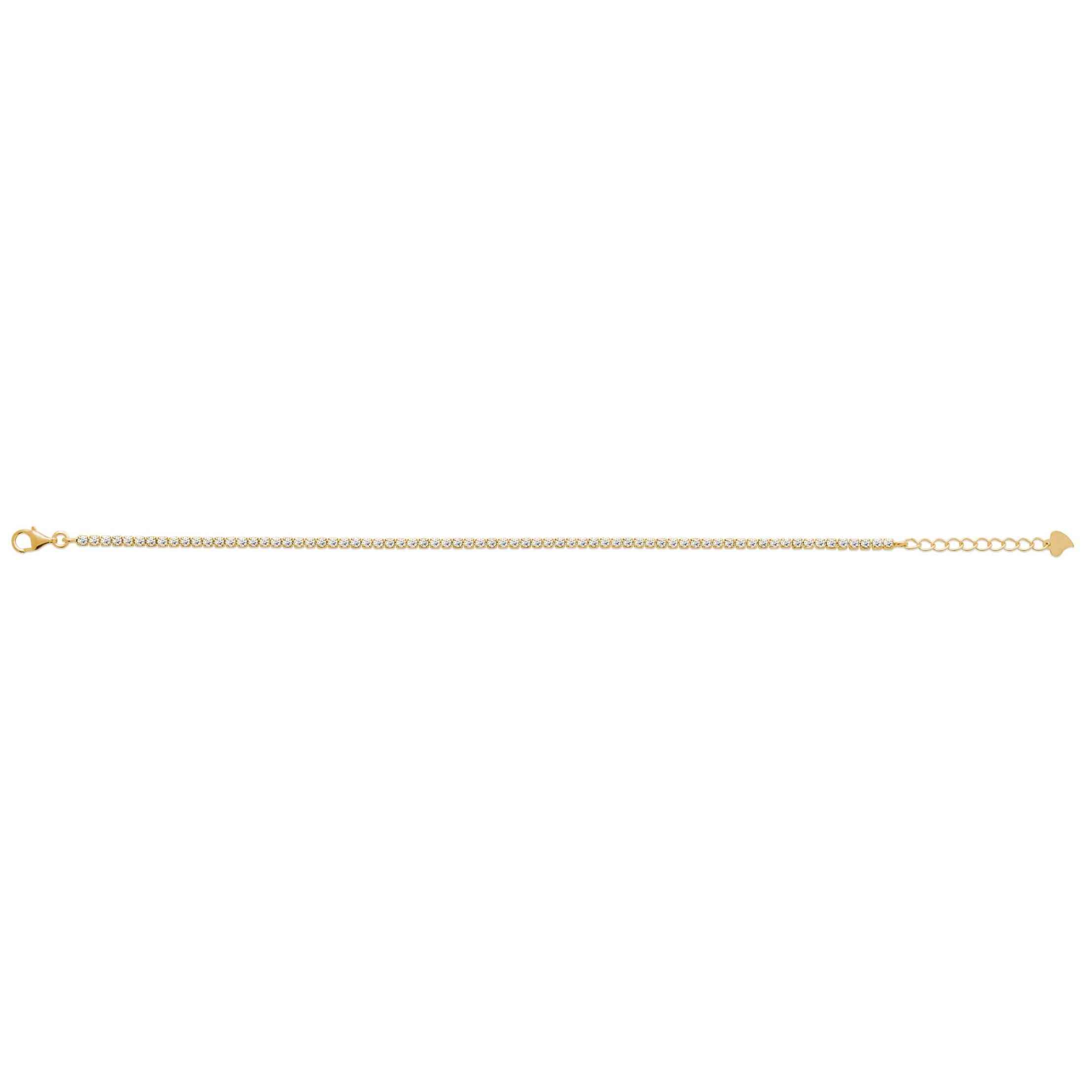 Vous recherchez un bijou élégant et brillant? Optez pour ce joli bracelet en plaqué or et entièrement sertis 4 griffes oxydes de zirconium de 18cm de longueur. Un bijou intemporrel à porter au quotidien.