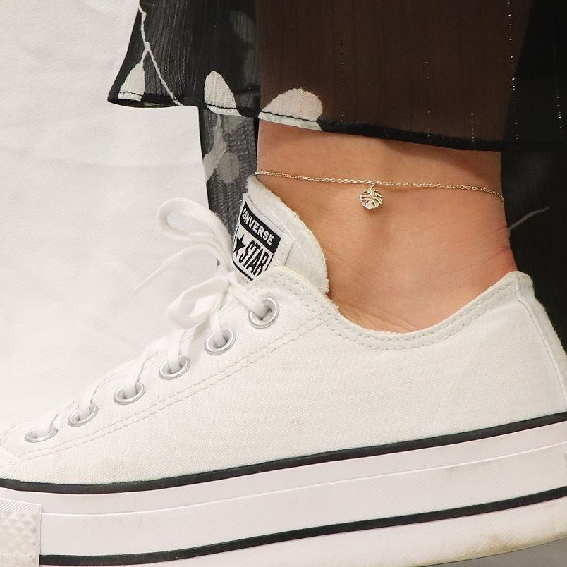 Les beaux jours sont là ? Laissez-vous tenter par cette jolie chaîne de cheville en plaqué or. Sa chaîne est en maille forçat et mesure 25 cm de longueur dont 2 cm sont en chaînette afin de s'adapter au mieux à votre cheville. Sur cette dernière se trouve une petite pampille en forme de feuille de palmier. Un indispensable de l'été !