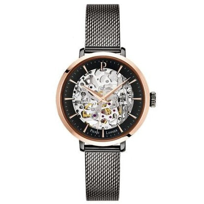 La montre femme AUTOMATIQUE 314C988 de la collection Pierre Lannier est un savant mélange entre modernité, design et élégance. Ce superbe modèle en acier inoxydable de couleur noir avec des touches de doré-rose possède un cadran laissant entrevoir les rouages de son mécanisme grâce à sa finition squelette. Autour se trouve un chemin de fer des minutes doré-rose sur un fond noir lui apportant sobriété et le côté chic du style urbain. Son bracelet en maille milanaise apporte la dernière touche d'élégance à cette montre.