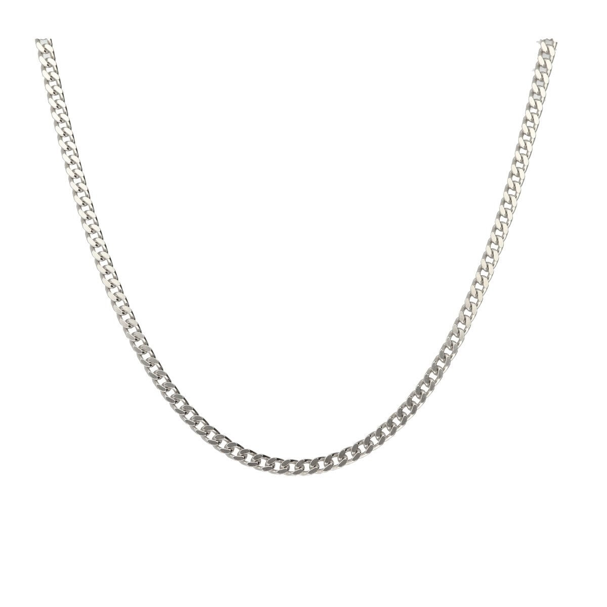 Une chaine en argent rhodié 925/1000. Une maille gourmette classique avec un fermoir mousqueton. D'une longueur de 55 centimètres, cette chaine pourra se porter seule ou accompagnée d'un pendentif.