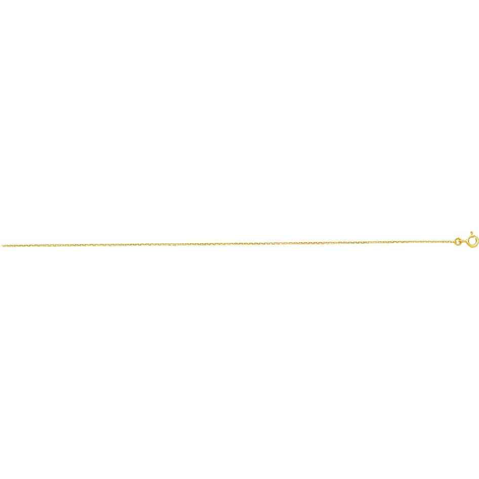 Une chaine en or jaune 375/1000ème (9 carats) de 45 cm de longueur. Une maille forçat classique avec un fermoir mousqueton. Cette chaine pourra se porter seule ou accompagnée d'un pendentif.