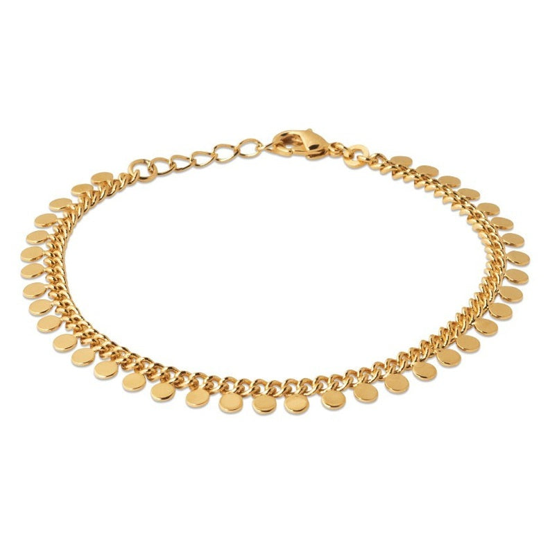 Un ravissant bracelet plaqué or, agrémenté de petites pampilles en forme de disques.