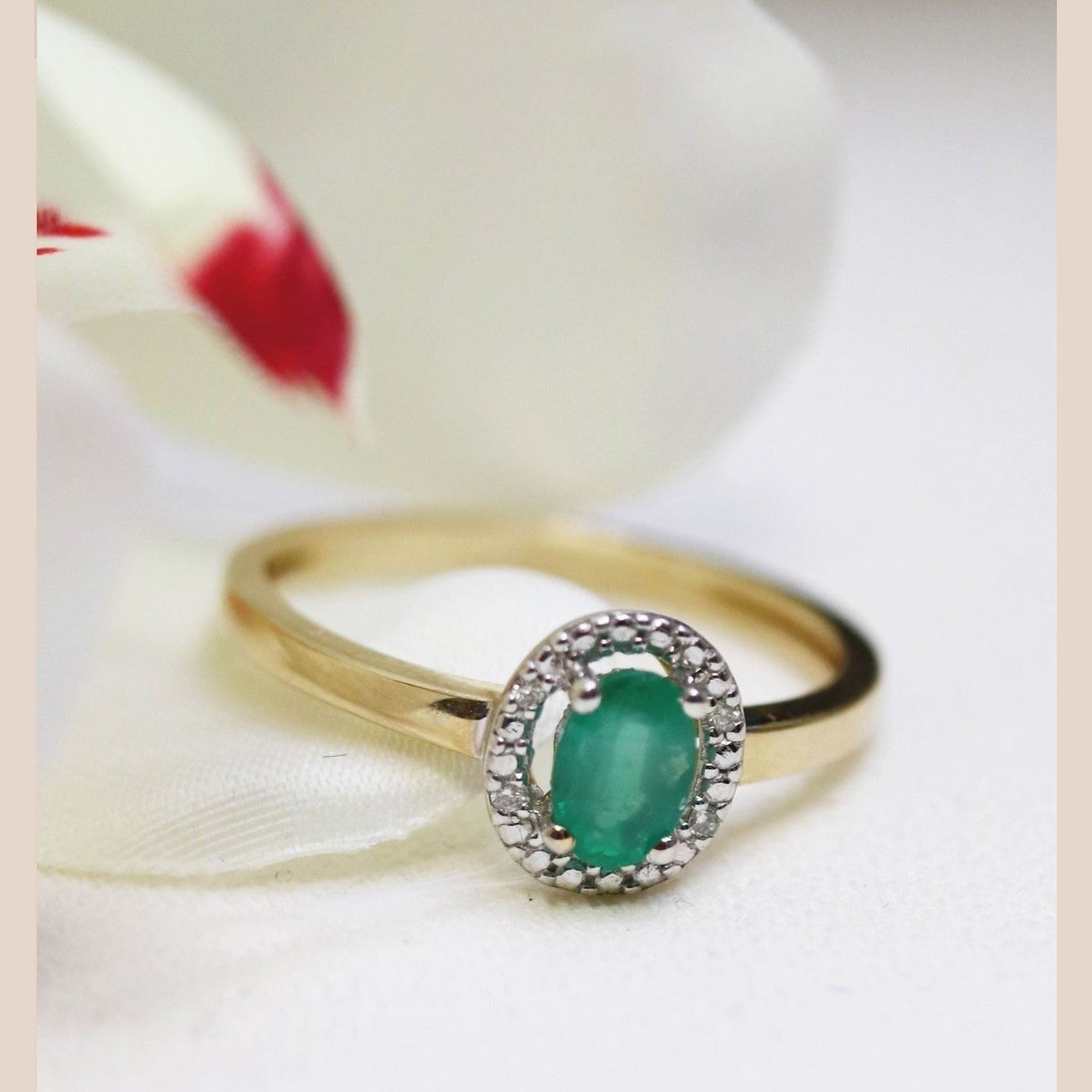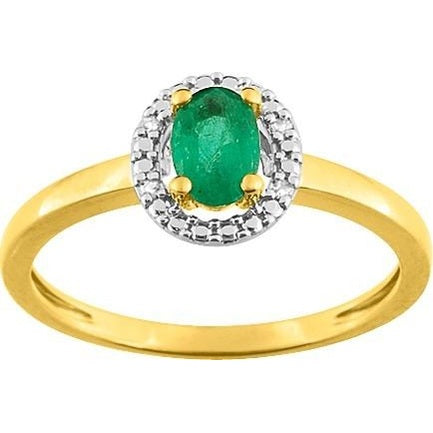 Vous serez sous le charme de cette superbe bague en o jaune et blanc 375/1000ème (9 carats) ! Sa forme ovale met en valeur une très belle émeraude, contrastée par une bande travaillée d'or blanc et seti de diamants. Un bijou élégant qui embellira toutes vos tenues avec éclat !