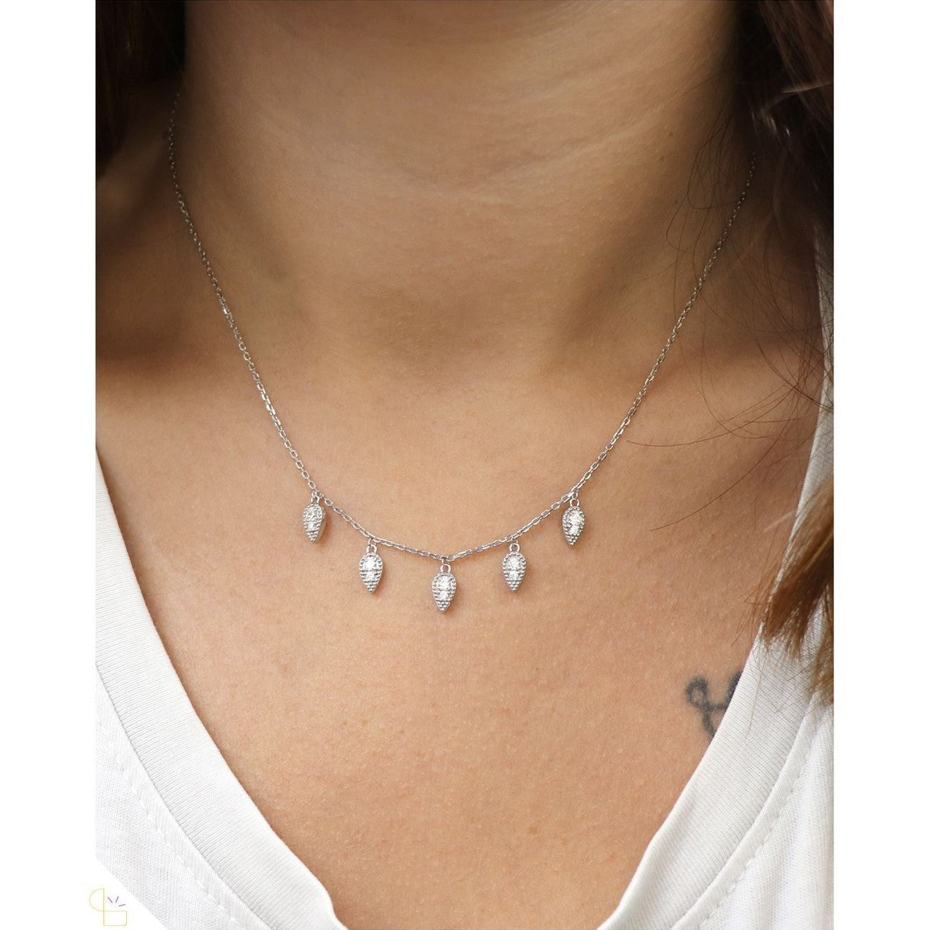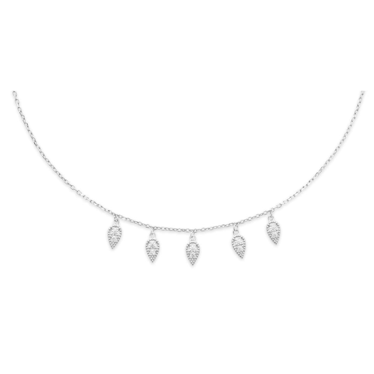 Orné de 5 pampilles en forme de gouttes inversées serties d'oxydes de zirconium, ce collier en argent viendra habiller votre décolleté en délicatesse. Avec sa chaîne de 45 centimètres, ce collier est également réglable à 40 et 42 centimètres pour vous permettre de le porter plus ou moins long selon vos tenues.