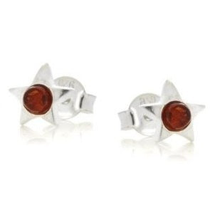 Petites boucles d'oreilles étoiles en argent rhodié 925/1000e serties de pierres d'ambres naturelles couleur cognac. Un bijou qui sort de l'ordinaire tout en restant discret.