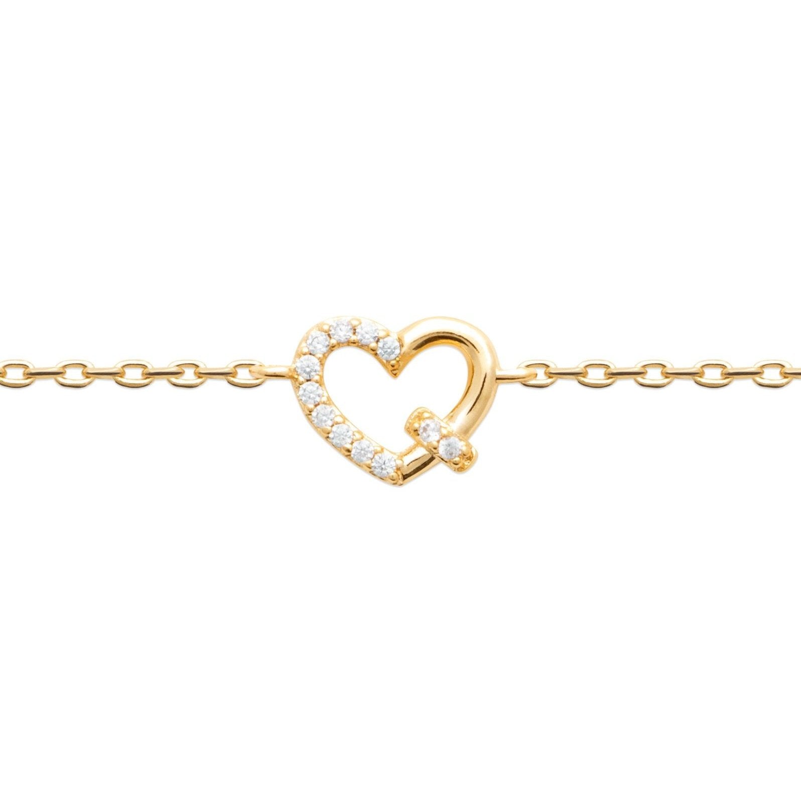 Romantique avec son petit pendentif cœur serti sur une moitié d'oxydes de zirconium brillants, ce bracelet en plaqué or est le parfait bijou à offrir ou à s'offrir. Discret et moderne, vous pourrez facilement le porter tous les jours.