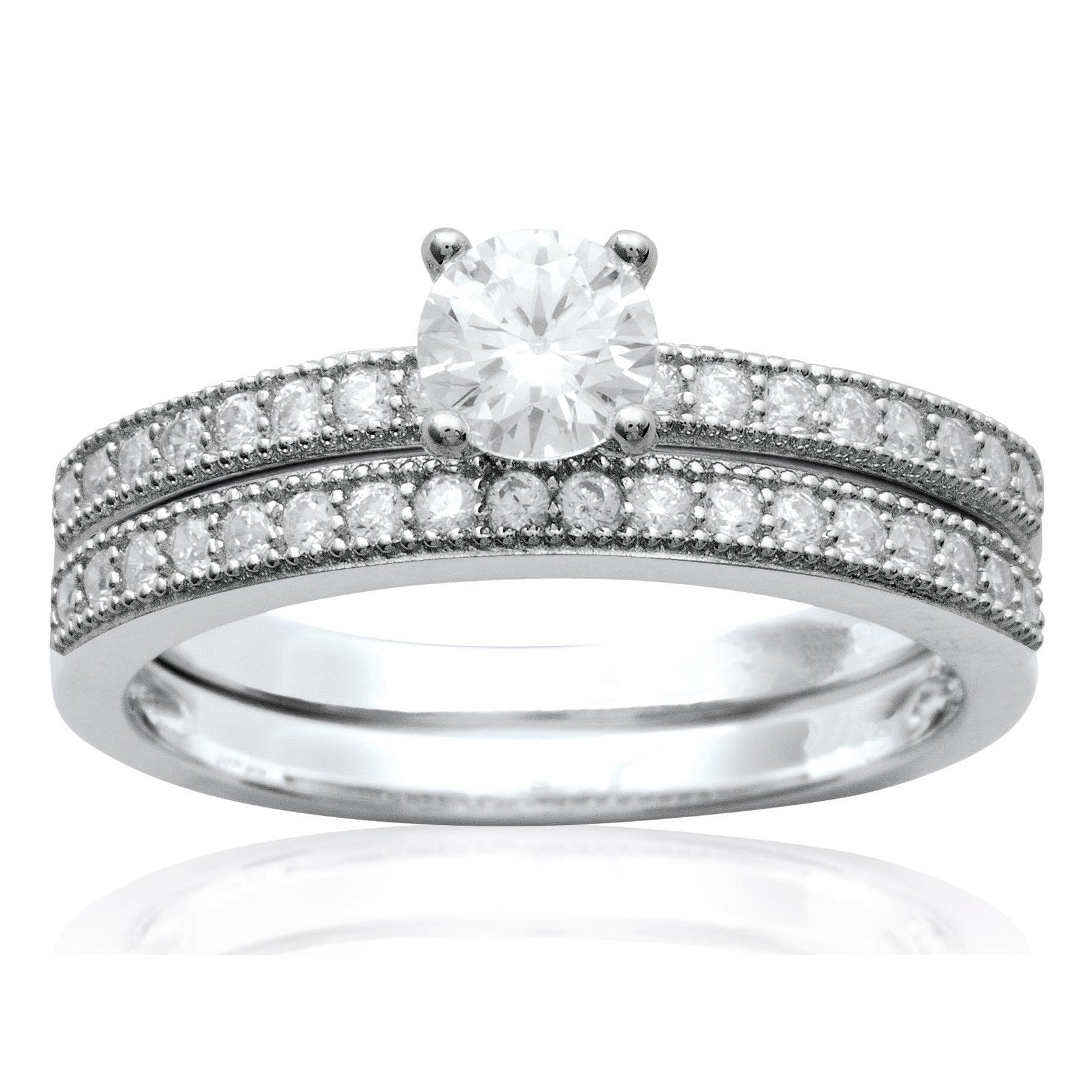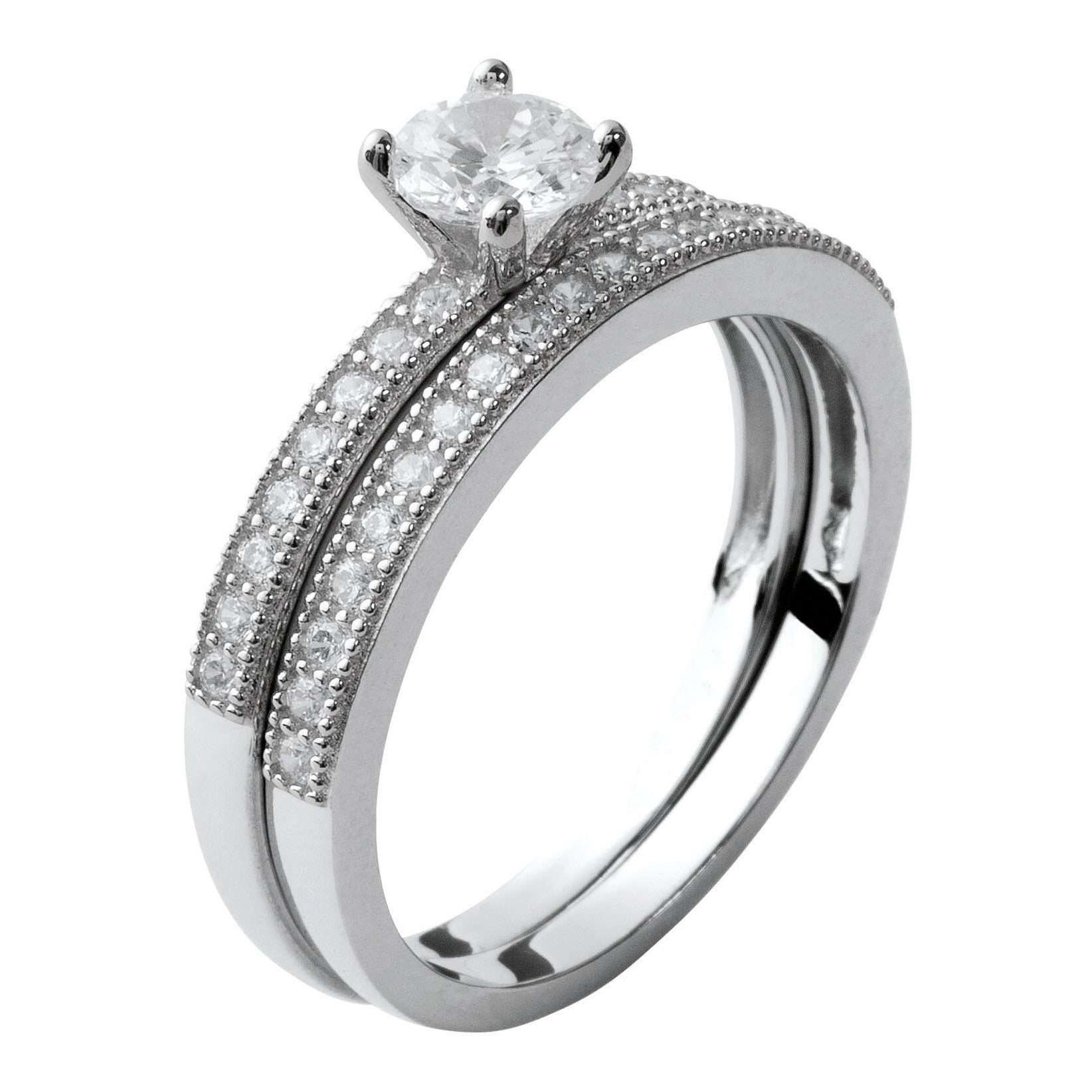 Cette bague se compose de deux anneaux séparés sertis d'oxydes, à la manière d'une bague de fiançaille et d'une alliance : une association réussie !