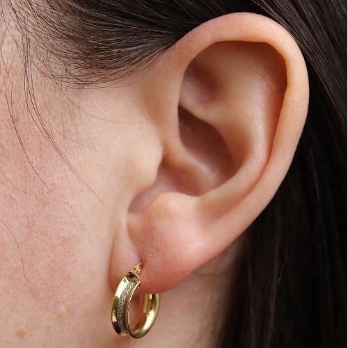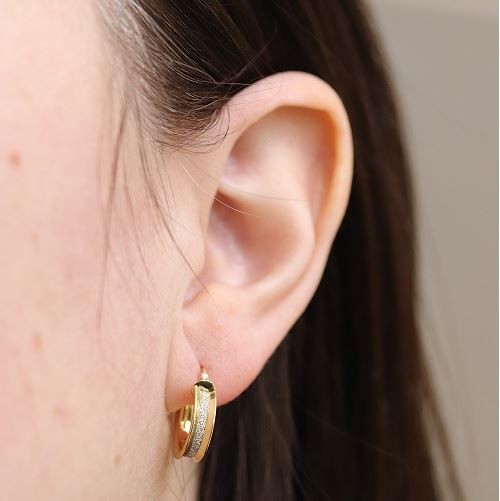 Des créoles élégantes en or jaune 375/1000 accompagnée de bandes glitter éclatante. Malgré leur diamètre de 10mm, ces créoles savent se faire remarquer !