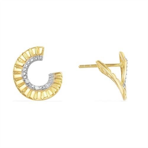 Craquez pour la forme originale de ces boucles d'oreilles en or 375/1000è (9 carats) bicolore. La partie extérieure en or jaune est ondulée pour ajouter un peu de reflet à ces boucles, tandis que la partie interne en or blanc est sertie de diamants et ciselée pour une touche d'éclat.
