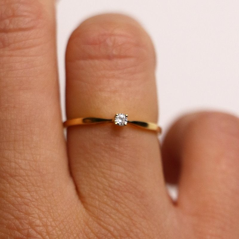 Difficile de résister à la simplicité et à l'élégance de ce solitaire. Un bijou en or jaune 750/1000 orné d'un diamant véritable serti 4 griffes de 0.04ct. Un incontournable !
