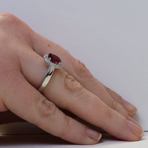 On aime le charme de cette superbe bague en argent rhodié 925/1000 au style très rétro. Cette bague pour femme est relativement fine avec son corps de bague de 3mm sur lequel surplombe un oxyde de zirconium ovale de 8x6 mm d'un rouge rappelant celui du rubis. Pour rehausser l'éclat de cette pierre centrale, elle est entourée d'une rangée d'oxydes blancs plus petits. Une bague tout en élégance qui ne saurait passer inaperçu.