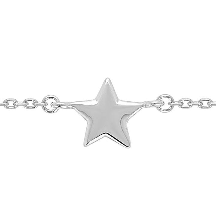 Un joli bracelet pour enfant en argent rhodié 925/1000è, il est orné d'une étoile à 5 branches. Réglable de 14 à 17 centimètres, il est facile à adapter à la taille du poignet.