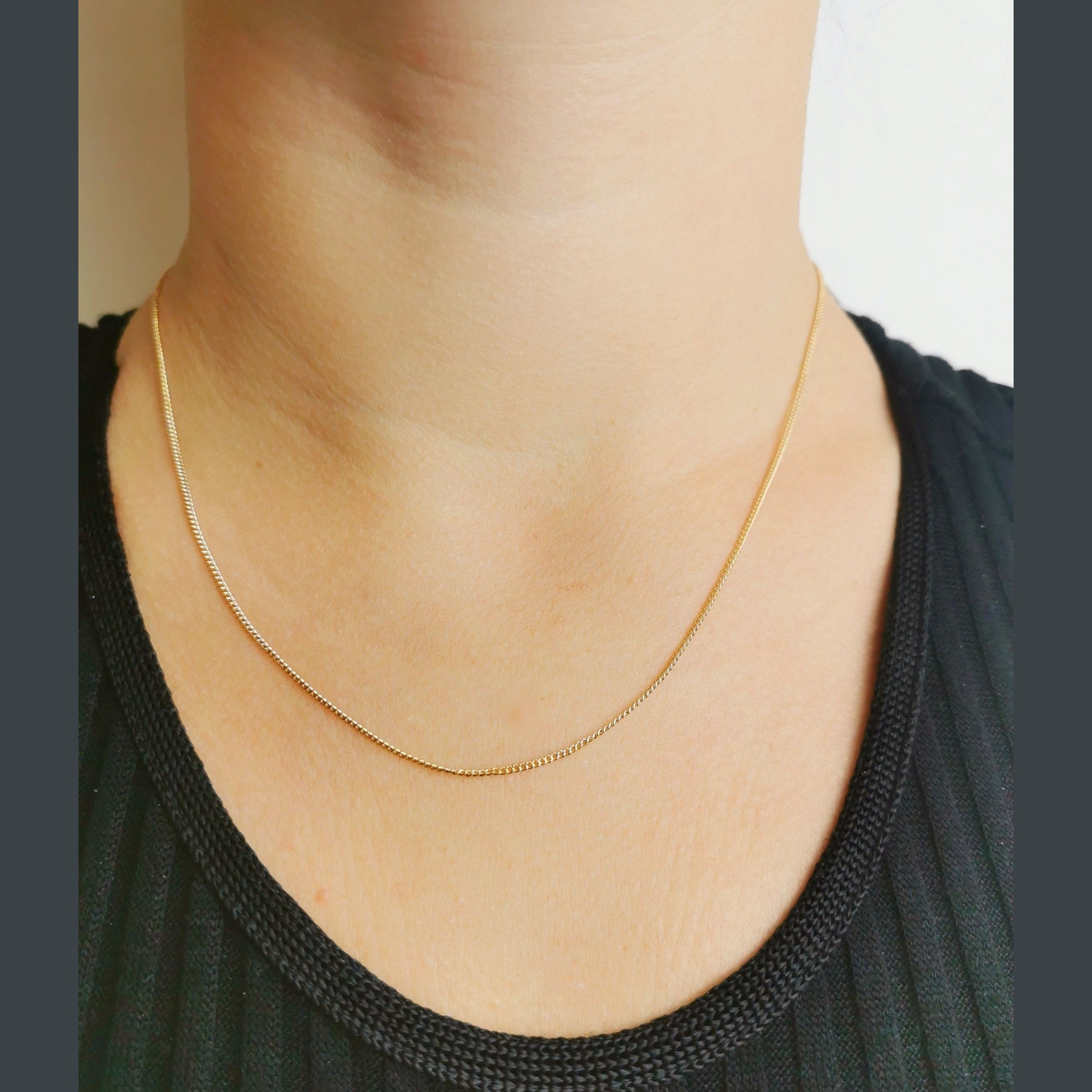 Une chaine en plaqué or 750/1000 3 microns qui résiste au quotidien. Une maille gourmette classique avec un fermoir mousqueton d'une longueur de 38 cm qui pourra se porter seule ou accompagnée d'un pendentif.
