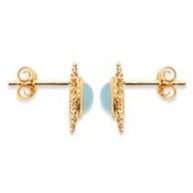 Vousallez adorer cette magnifique paire de boucles d'oreilles en plaqué or. Ces jolies puces sont en fome de soleil perlée au milieu desquelles ont retrouve unejolies agates rondes et bleues.