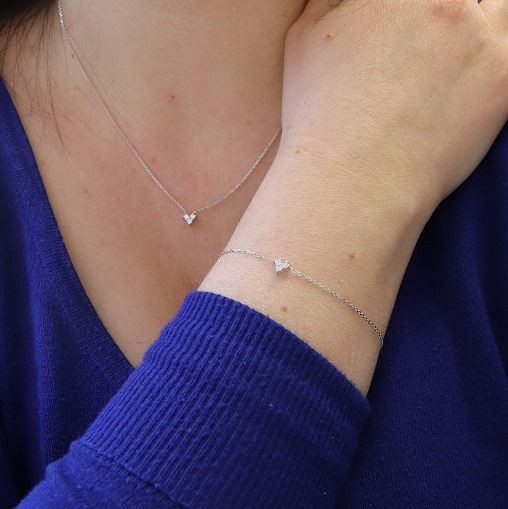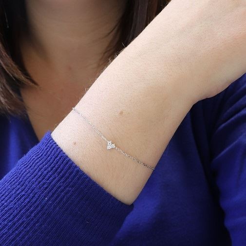 On adore ce splendide bracelet en argent rhodié. Avec sa chaîne en maille forçat de 18cm de longueur avec son anneau intermédiaire placé à 16 m, le collier s'adaptera au mieux à votre poignet. Son pendentif est fixe et se compose de trois oxydes de zirconium blancs placés en forme de V laissant deviner un petit cœur. Un bijou minimaliste qui se portera à merveilles avec toutes vos tenues.