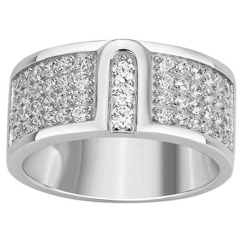 Laissez-vous séduire par cette magnifique bague large en argent rhodié 925/1000ème dont tout le corps de la bague est serti d'oxydes de zirconium pour lui apporter beaucoup plus d'éclat et de brillance.