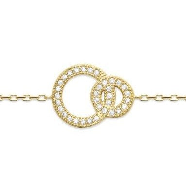 Elégance et éclat pour ce bracelet en plaqué or classique et intemporel : ses deux cercles entrelacés sont microsertis d'oxydes brillants, pour un bijou qui ne vous quittera plus !