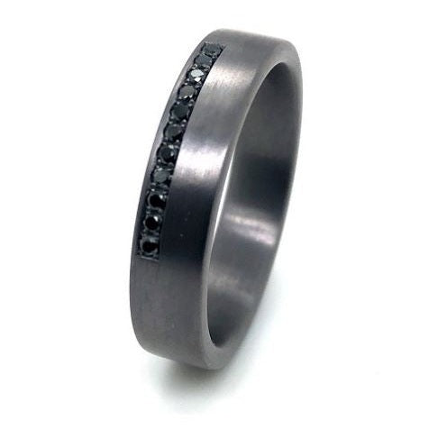 Laissez vous séduire par cette superbe alliance en tantale 999/1000è serti grain de diamants noirs de 0.11 carats. Un modèle origjnal avec des diamants tons sur tons qui vous accompagnera pour votre union.