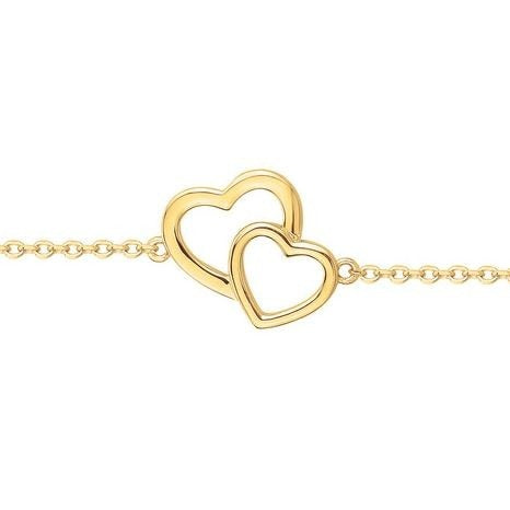 À offrir ou à s'offrir ce joli bracelet représente deux cœurs superposés. Symbole de l'amour et incontournable en bijouterie, ce bracelet en plaqué or est un indispensable !