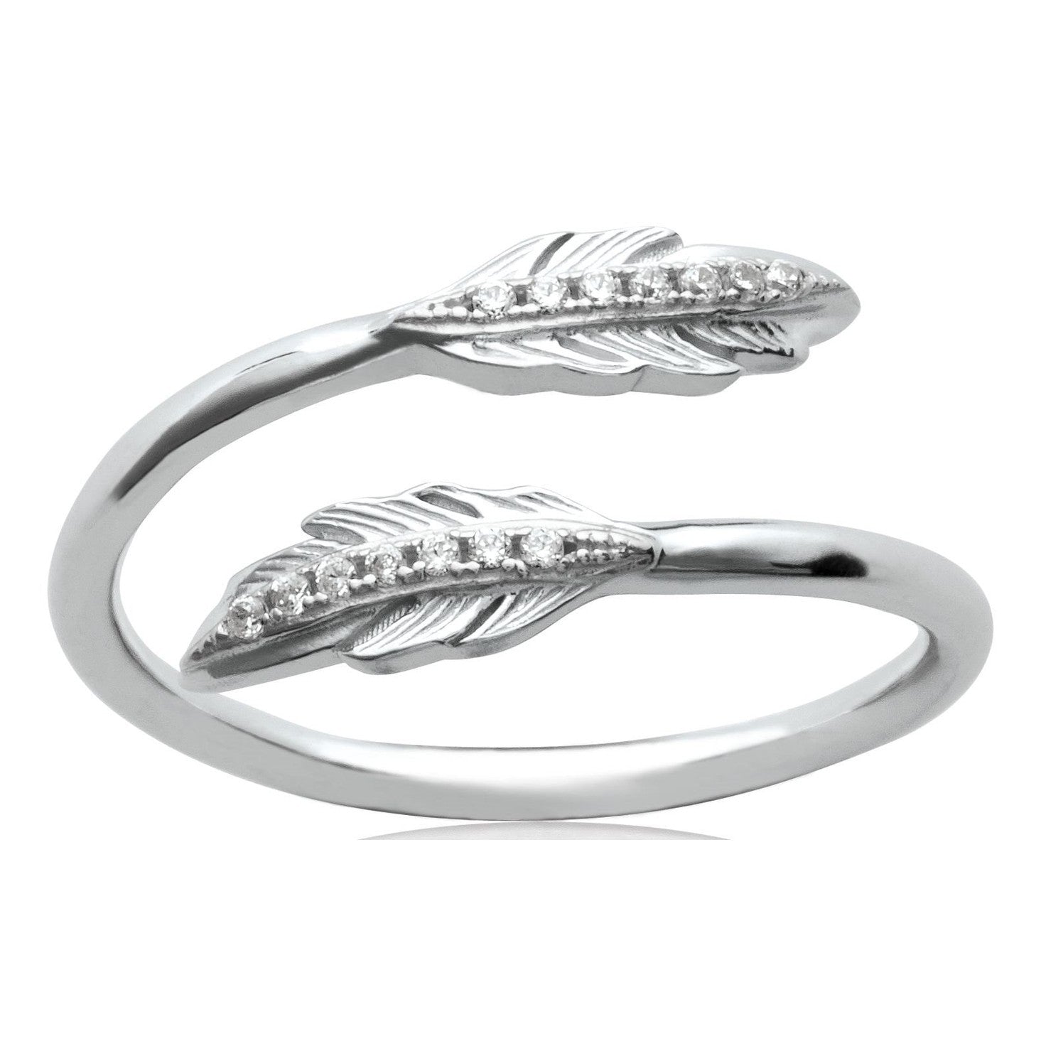 Sublime bague en argent rhodié et oxydes de zirconium sur les extrémités en forme de plumes. Laissez vous séduire par le design naturel de ce modèle mis en lumière grâce aux pierres blanches serties sur le centre des plumes. Une bague résolument moderne, délicate et dans l'air du temps.
