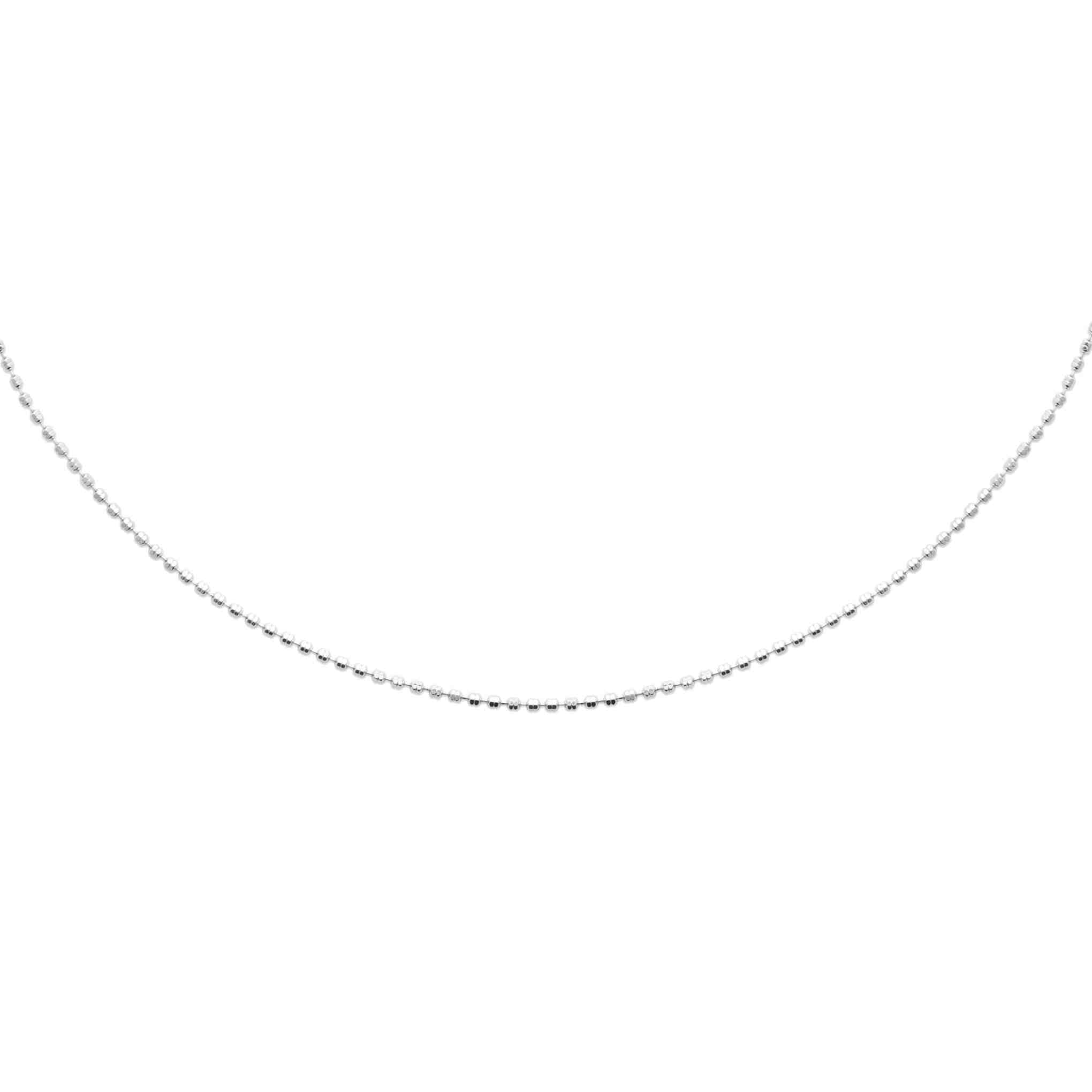 Une chaîne fin en argent rhodié 925/1000è maille petites billes. Un bijou simple à porter avec ou sans pendentif. Réglable à 45, 42.5 et 40 centimètres, vous trouverez de nombreuses occasions de la porter !