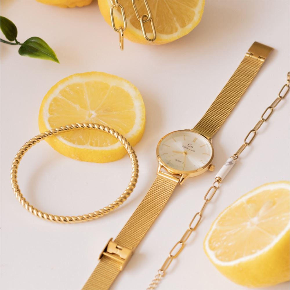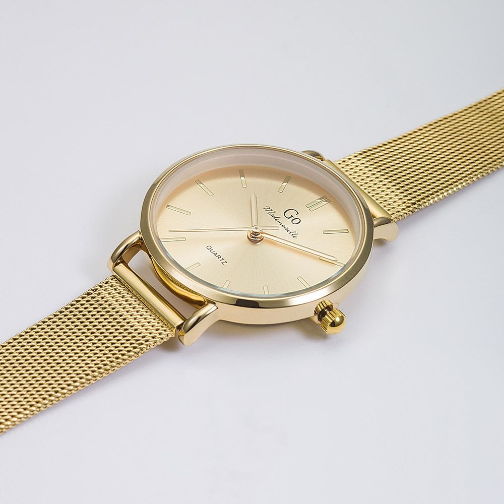 Avec sa silhouette classe et épurée, impossible de ne pas craquer pour cette montre Go Mademoiselle 695430 ! Équipée d'un joli boîtier rond et doré de 32 mm de diamètre, ce dernier se lie à un magnifique bracelet en maille milanaise de la même couleur. L'atout charme de cette montre c'est bien sûr son lumineux cadran champagne, sublimé par d'envoutants reflets soleil apportant grâce et finesse au modèle. Féminine et tendance, cette montre Go Mademoiselle 695430 vous accompagnera au quotidien !