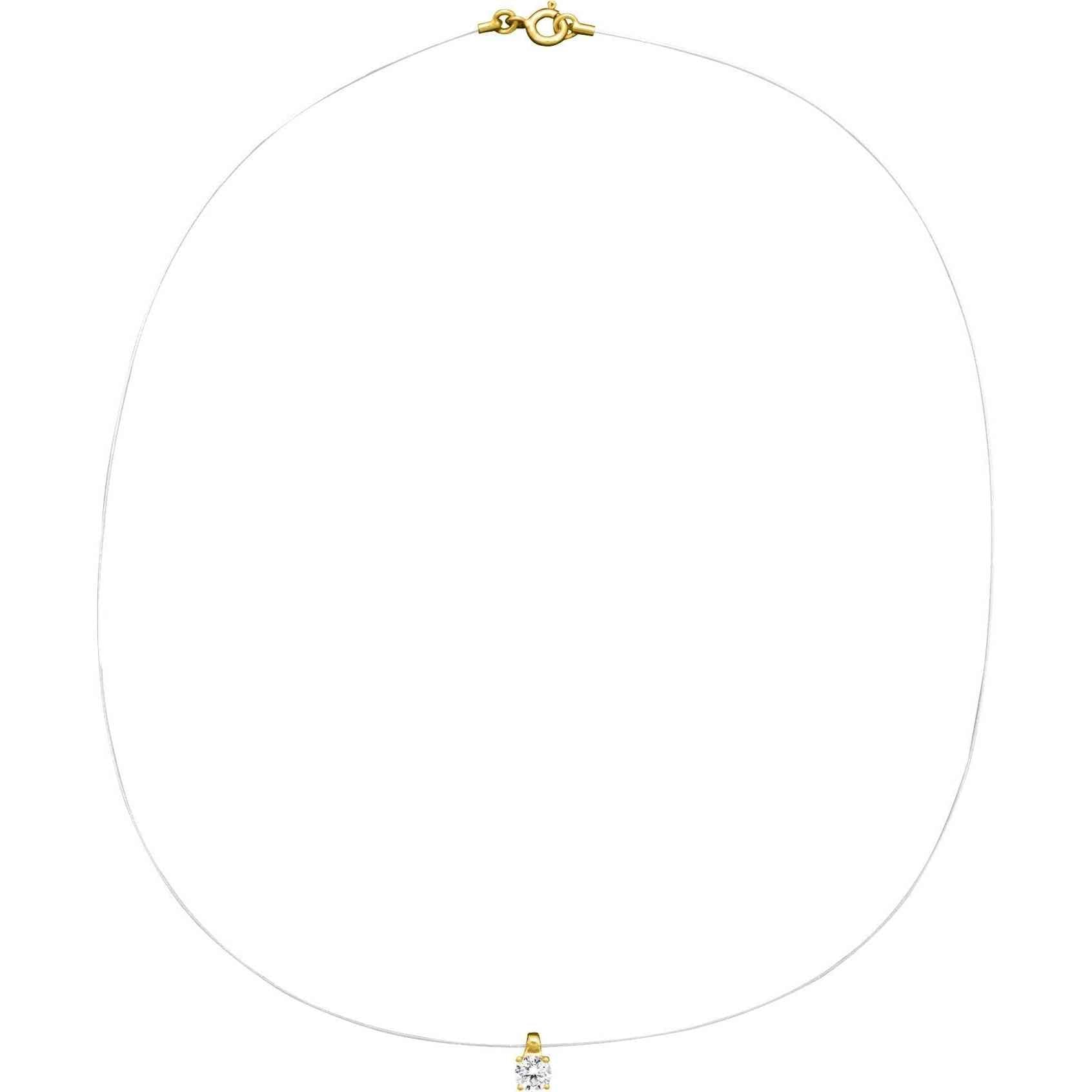 Un superbe collier sur fil nylon discret. On adore cet oxyde de zirconium serti 4 griffes en plaqué or qui viendra subtilement se déposer sur votre cou.