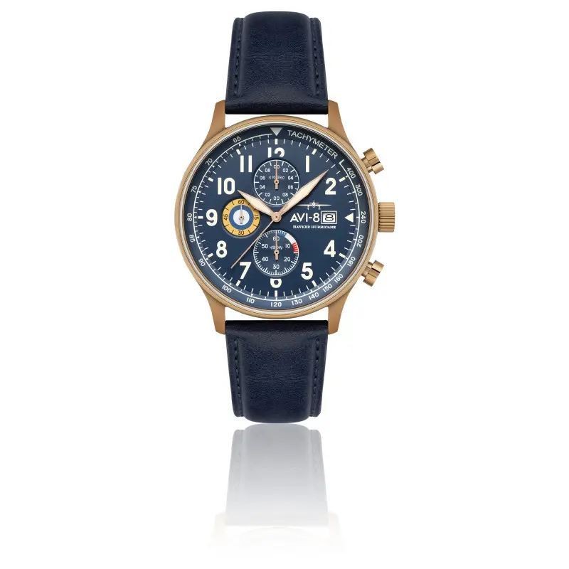 Le modèle AV-4011-0Q intègre la collection AVI-8 Hawker Hurricane. Cette collection porte le nom d'un avion de chasse britannique qui s'est illustré à de nombreuses reprises durant la seconde guerre mondiale grâce à ses capacités d'armement et sa résistance. Il fut d'ailleurs le premier avion monoplan de l'armée britannique, la Royal Air Force. Son style vintage se caractérise par un boîtier en acier inoxydable de 43.5 millimètres de diamètre et de 10.70 millimètres d'épaisseur. Son bracelet élégant est composé de cuir véritable avec une couleur en harmonie avec le boîtier et le cadran. Cette montre AVI-8 possède une étanchéité de 5 ATM soit une résistance de 50 mètres.