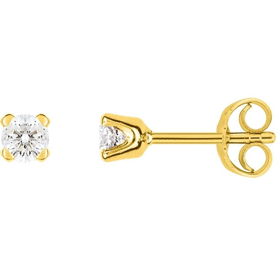Petites boucles d'oreilles clous en or jaune 750/1000è serties 4 griffes de diamants véritables de 0.20 carats. Des boucles d'oreilles élégantes, discrètes et intemporelles.