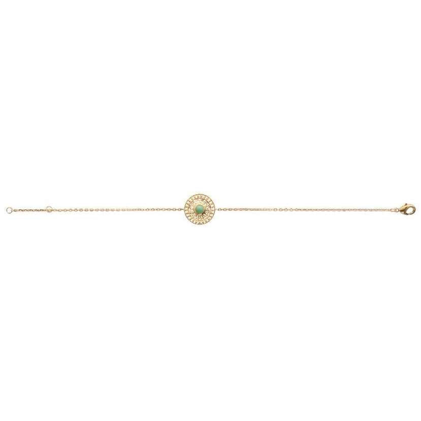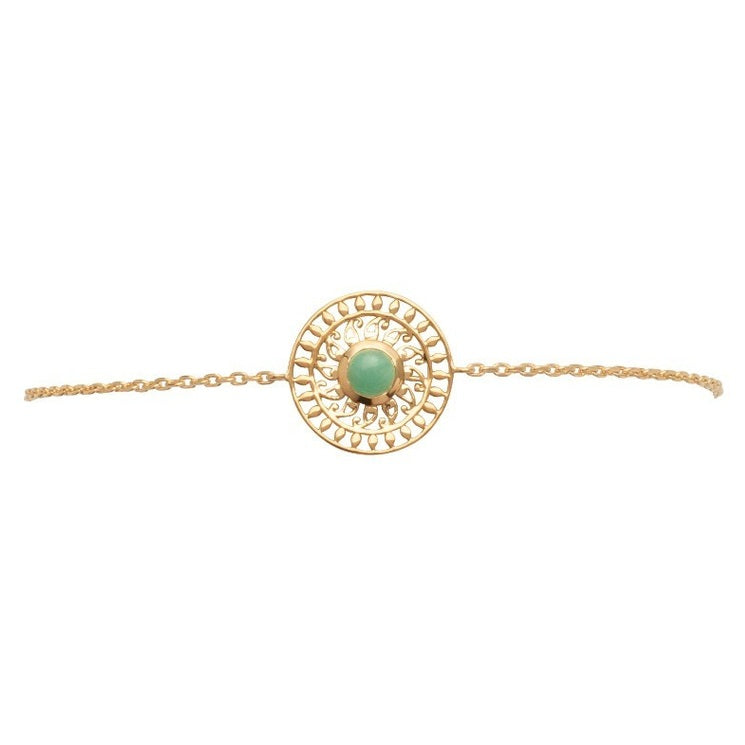 Comment ne pas craquer sur ce bracelet au motif de soleil ajouré et habillé d'une pierre naturelle d'aventurine en son centre ? Un modèle tout en douceur et résolument tendance.
