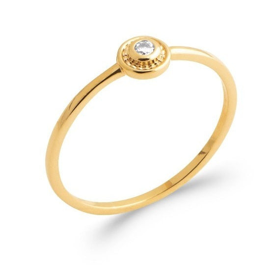 Une bague très délicate, qui vous séduira par son petit oxyde central entouré d'un fin motif perlé.Un bijou tout en finesse à porter seul ou à accumuler.