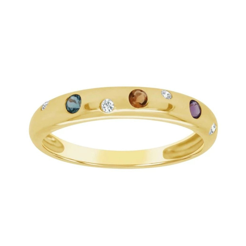 Découvrez cette magnifique bague en or jaune 750/1000è ornée de citrine, améthyste, topaze bleue et diamants 0.10 carats. Un bijou coloré et original !