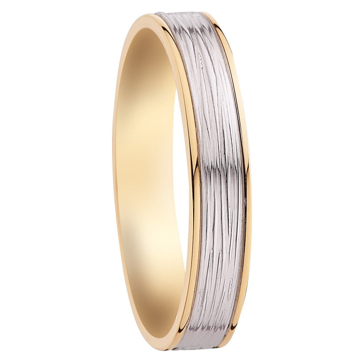 Vous serez sous le charme de cette ravissante alliance bicolore 4 mm de largeur résolument moderne avec l'effet froissé de son centre en or blanc 750/1000ème.
