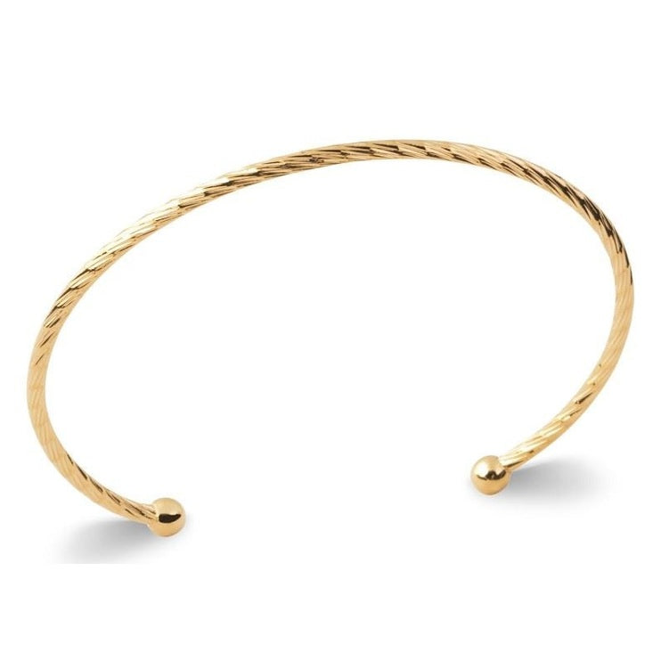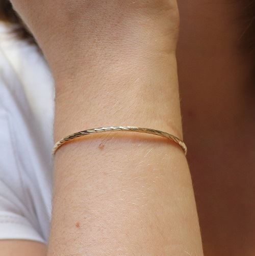 Un jonc ouvert lumineux à l'effet facetté. Vous pouvez le porter indifféremment avec l'ouverture à l'avant ou à l'arrière du poignet.