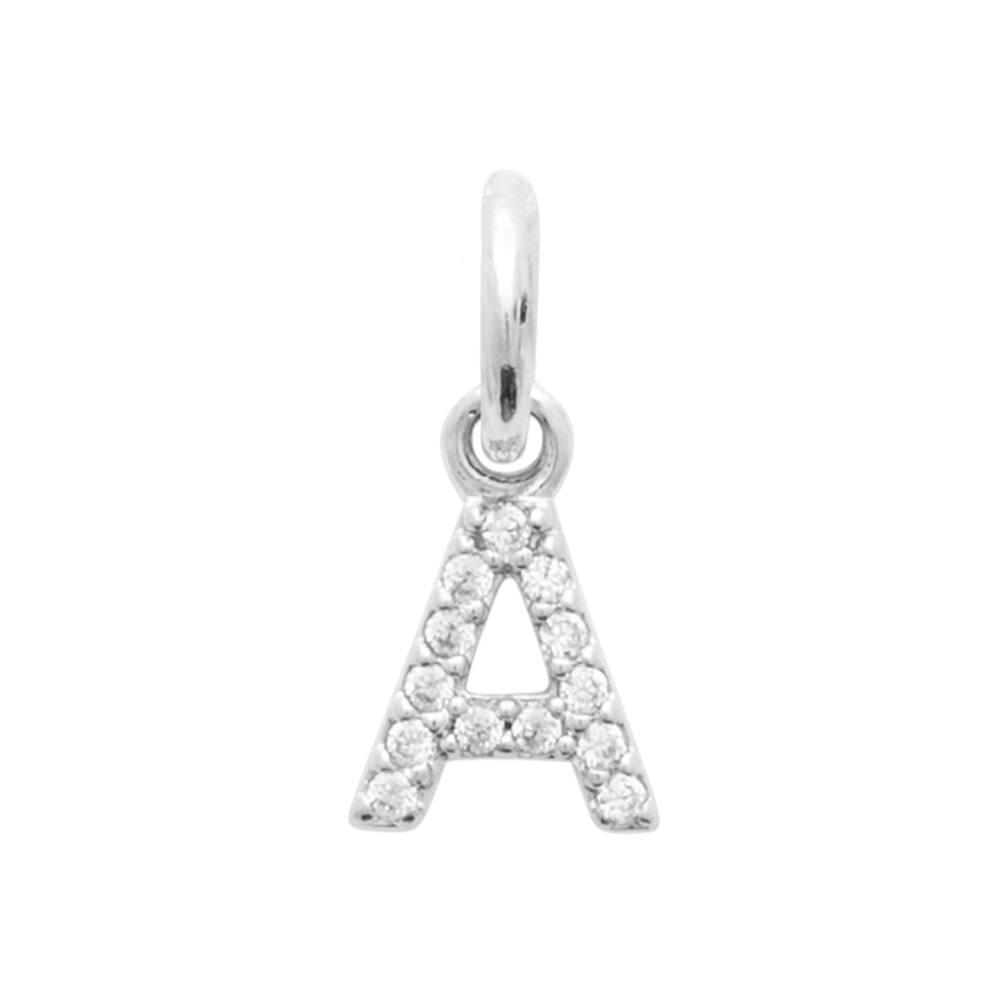 Un superbe petit pendentif en argent rhodié 925/1000è serti d'oxydes de zirconium. Choisissez la lettre symbolique et ajoutez la à la chaine de votre choix.