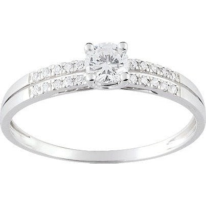 Difficile de résister à cette superbe bague en or blanc 375/1000 et ses oxydes de zirconium éclatants. Un solitaire accompagné, un bijou résolument élégant et intemporel !