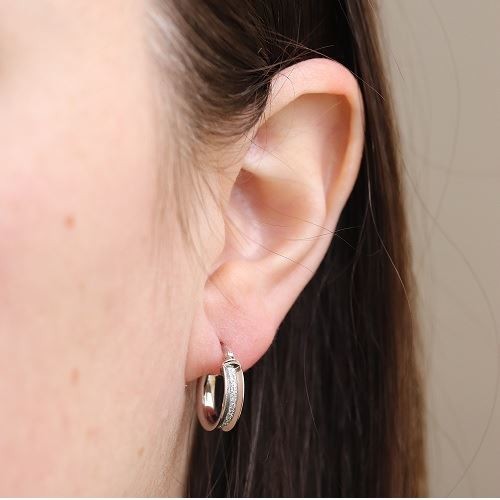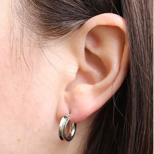 De jolies créoles élégantes, de diamètre 10mm en or blanc parsemée de glitter pour un look tout en brillance !