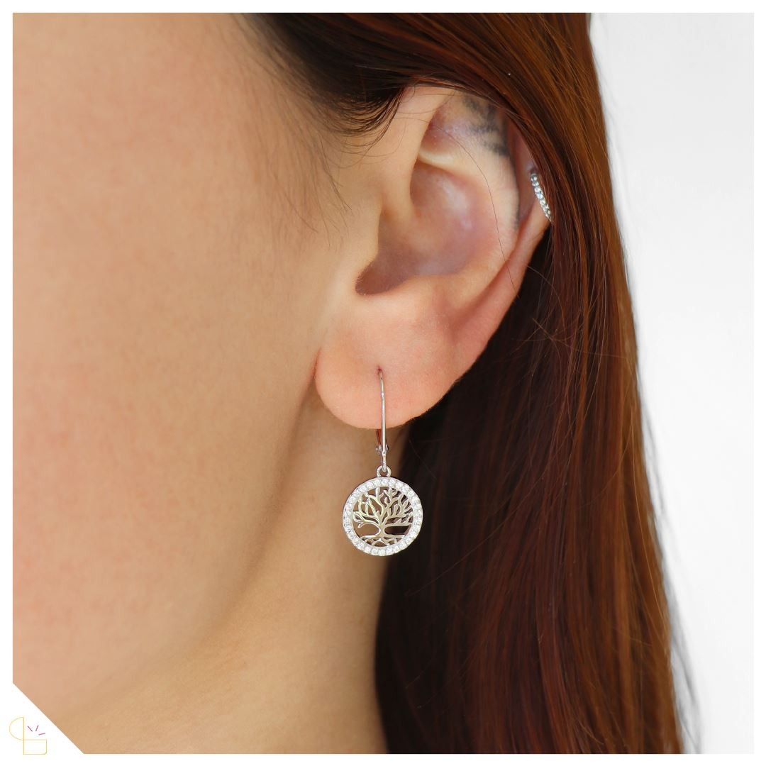 Craquez pour ces magnifiques boucles d'oreilles pendantes en argent rhodié 925/1000è et leurs motifs arbre de vie ajourés. Finement travaillées, le contour de chaque boucle est serti de 30 oxydes de zirconium qui apporte de la luminosité et viennent mettre en avant un arbre de vie délicat et détaillé.